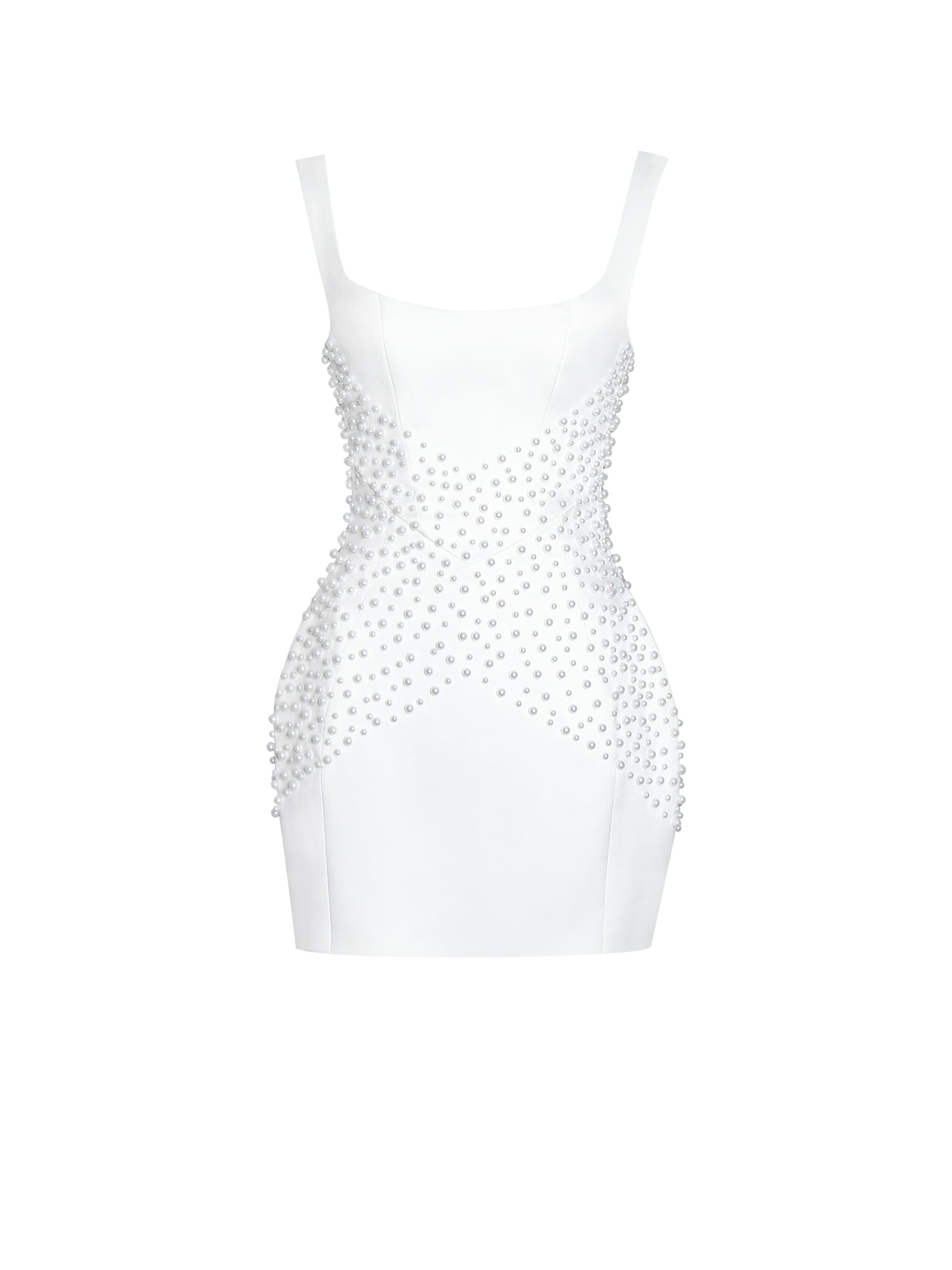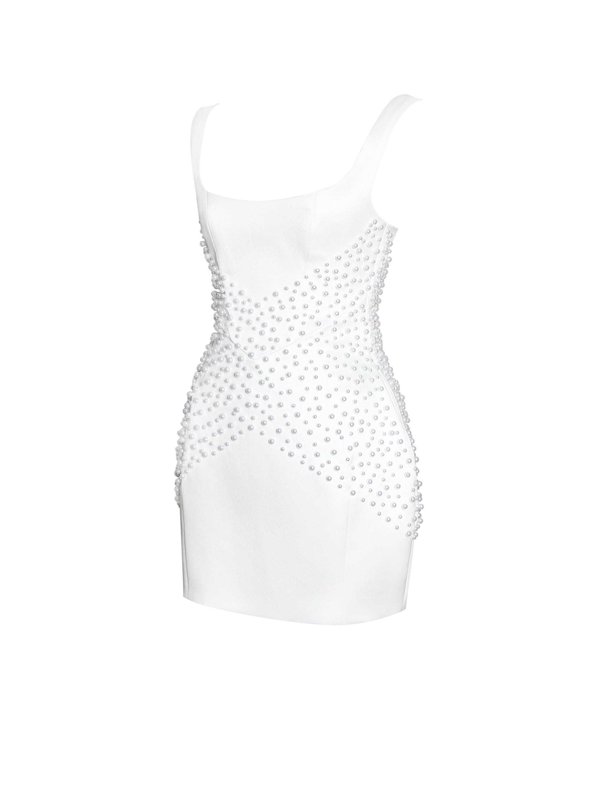 Tais Pearl Beaded Cocoon Shape Sleeveless Mini Dress